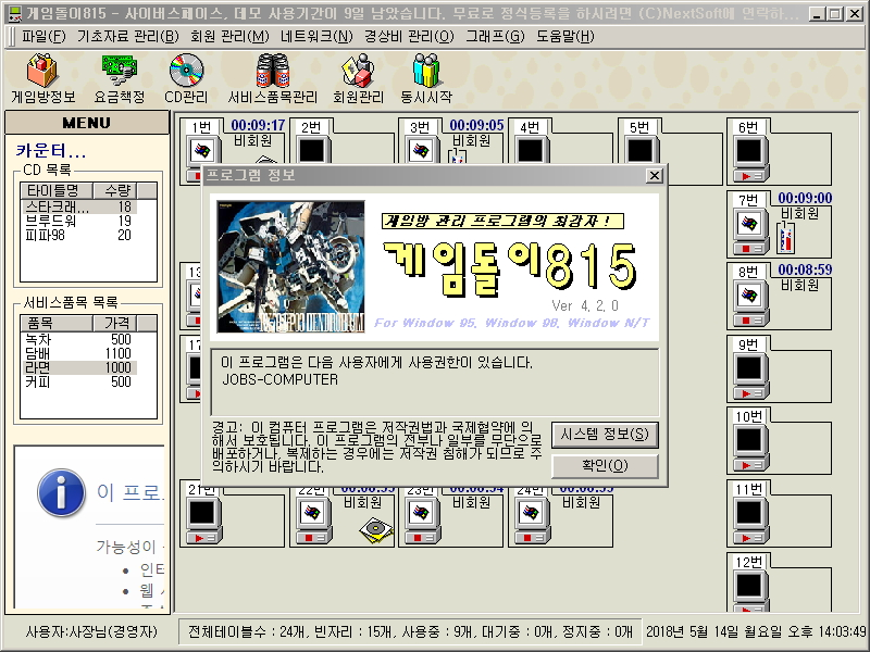 . 게임방의 요금계산 및 운영형태에 따라서 주문제작 될수도 있습니다.