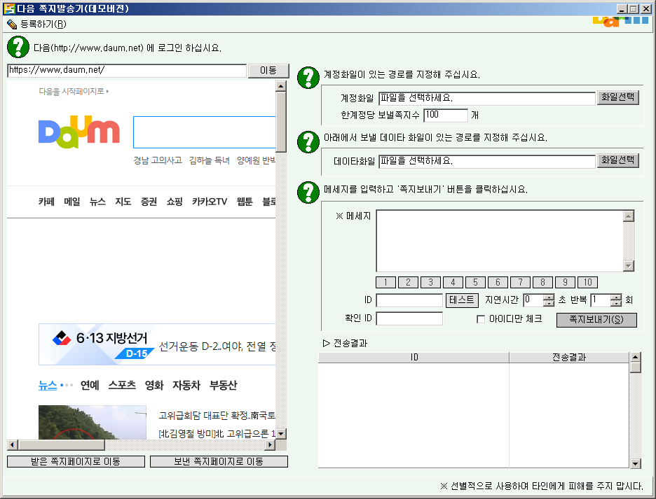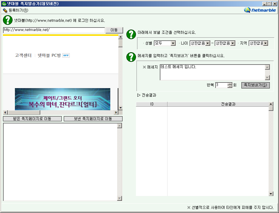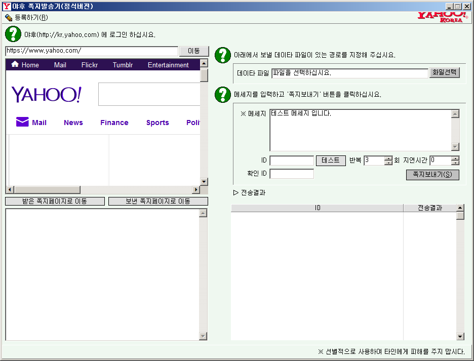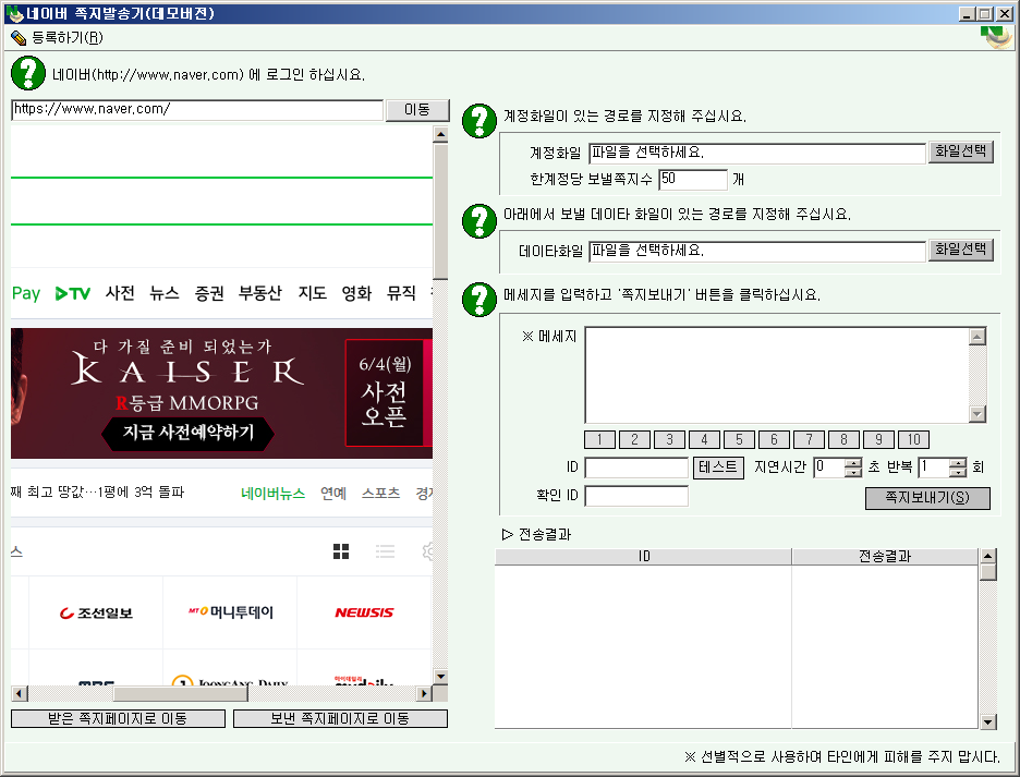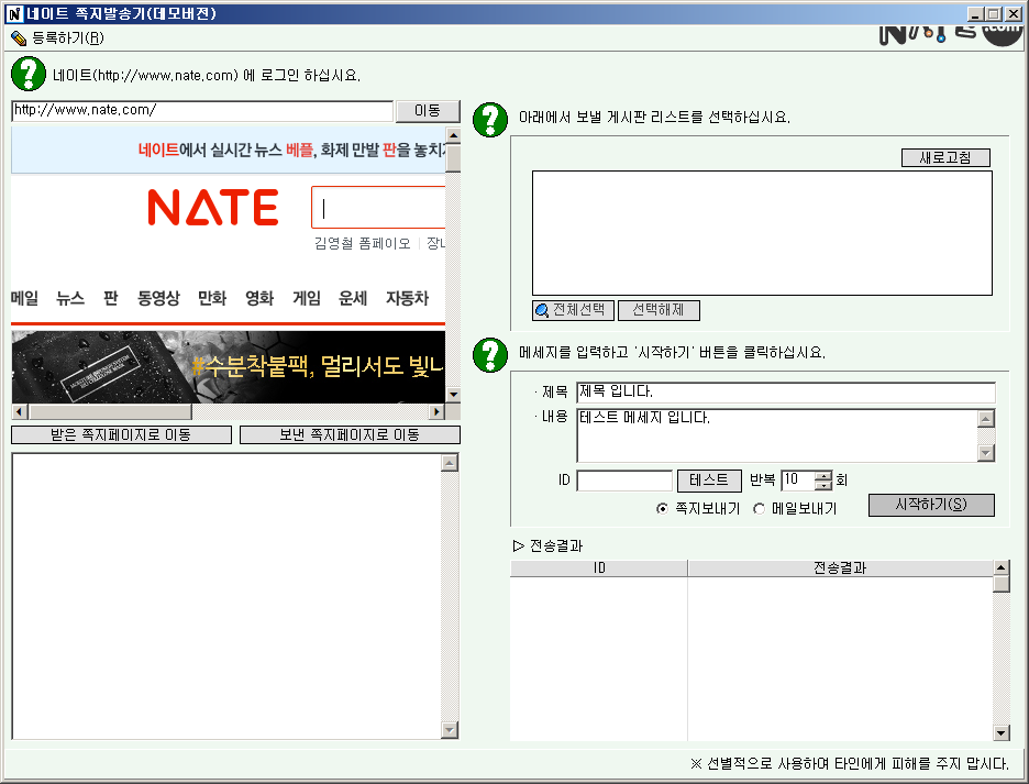 쪽지발송프로그램 - 네이버/다음/네이트/야후/다모임/넷마블 등