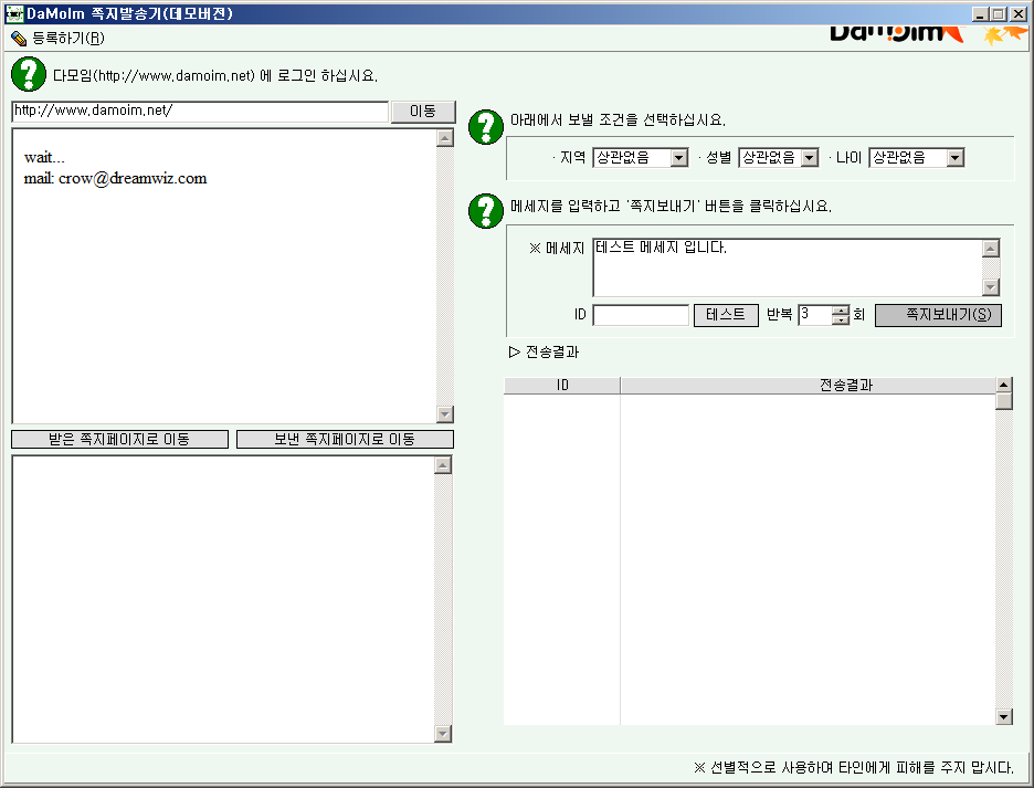 ■ 기능 네이버/다음/네이트/야후/다모임/넷마블 등 쪽지발송프로그램, 수집되 ID를 이용 또는 자동 수집하여 쪽지 발송