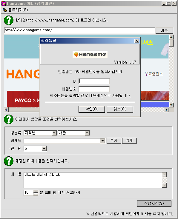 ■ 기능 자동 채팅 프로그램, 설정한 조건에 맞는 대화방에 접속하여 자동 채팅